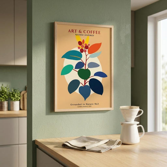 London-roasted specialty coffee paired with museum-quality. Matisse-inspired prints. Elevate your daily brew.